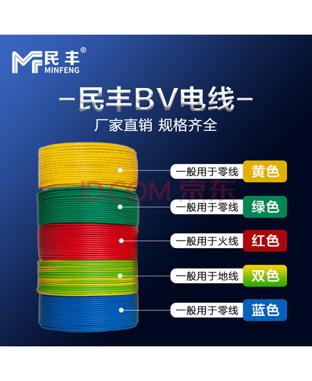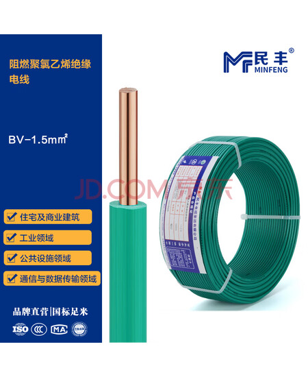 民丰电线 BV 1.5平方 铜芯国标单芯硬线阻燃电线 绿色 100米/盘