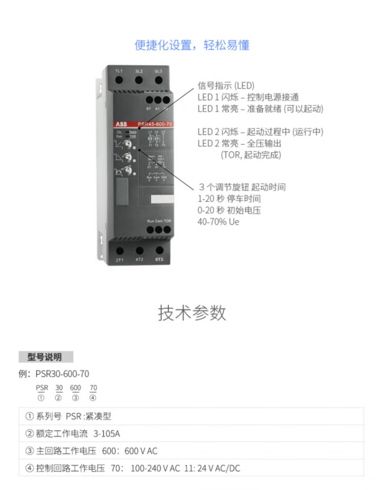 ABB 软起动器PSE PSR PST PSTB系列 PSR37-600-70