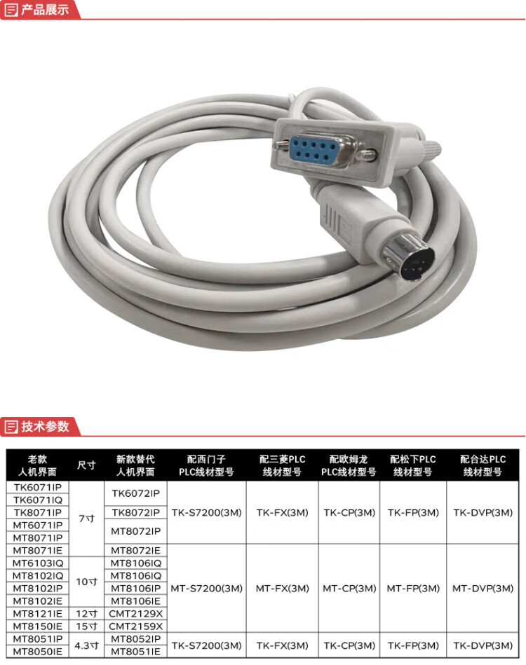 威纶通 触摸屏通讯线 TK(威纶通)-FP(松下) 3米(第三方生产)
