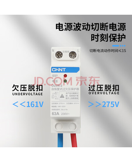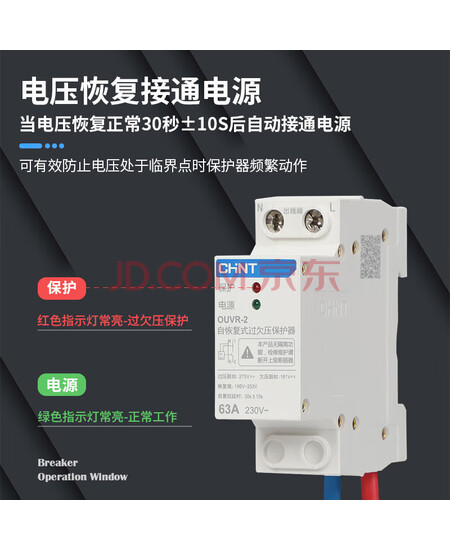正泰(CHNT)家用自负式过欠压保护器 OUVR-2 40A 1P+N AC220V 自动复位延迟 欠压保护装置 防雷