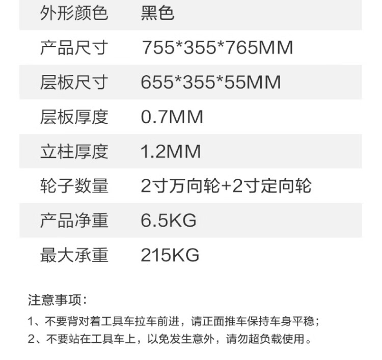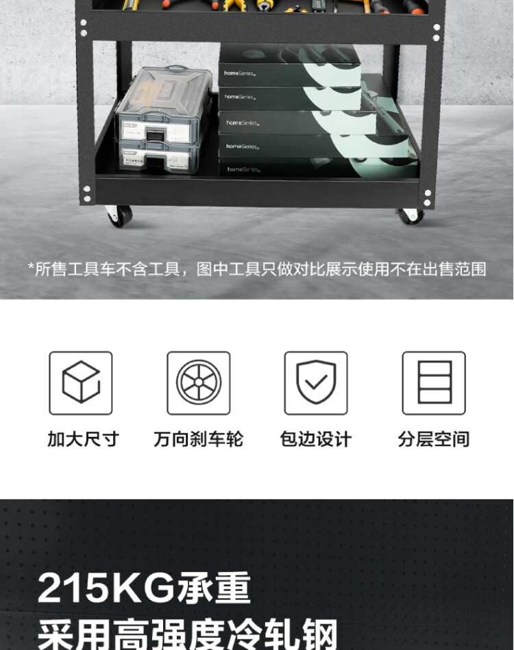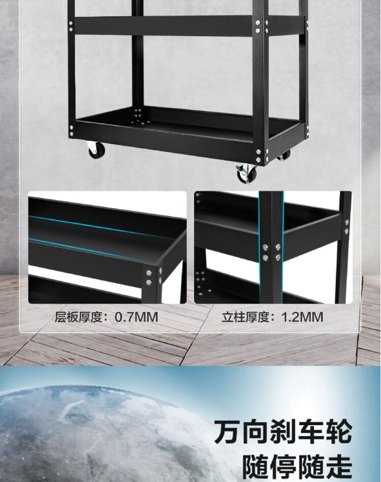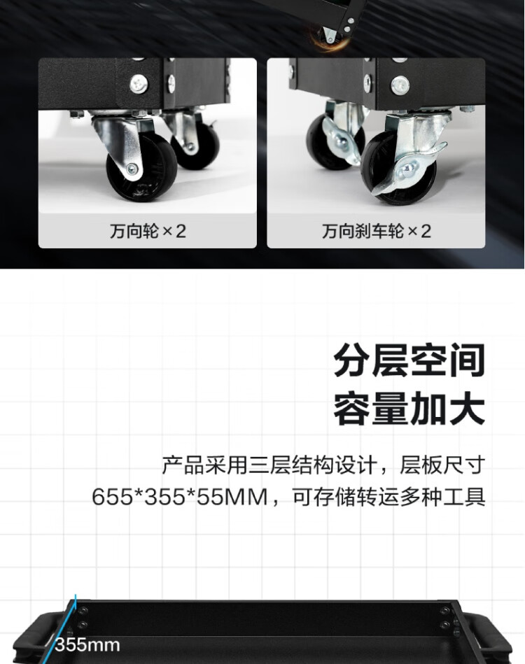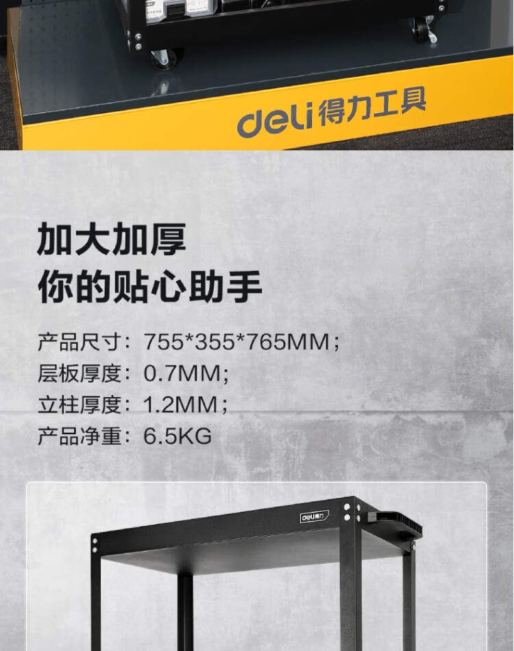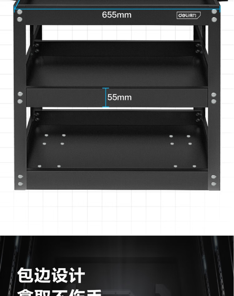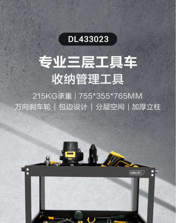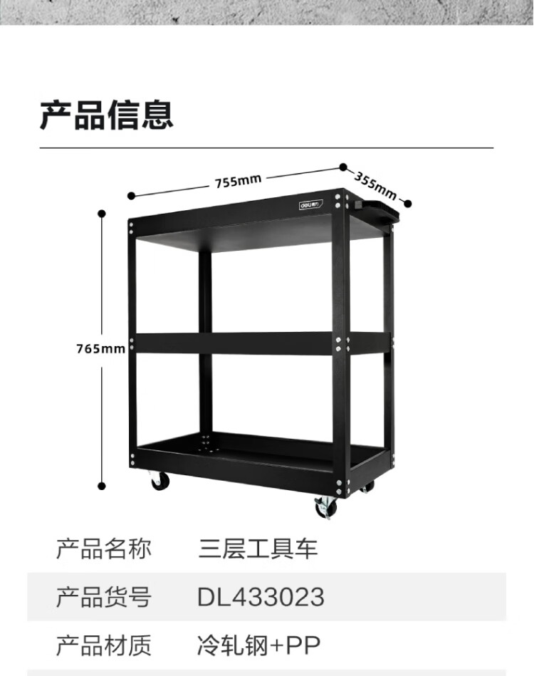 得力工具 加强型三层工具车 755x355x765mm DL433023