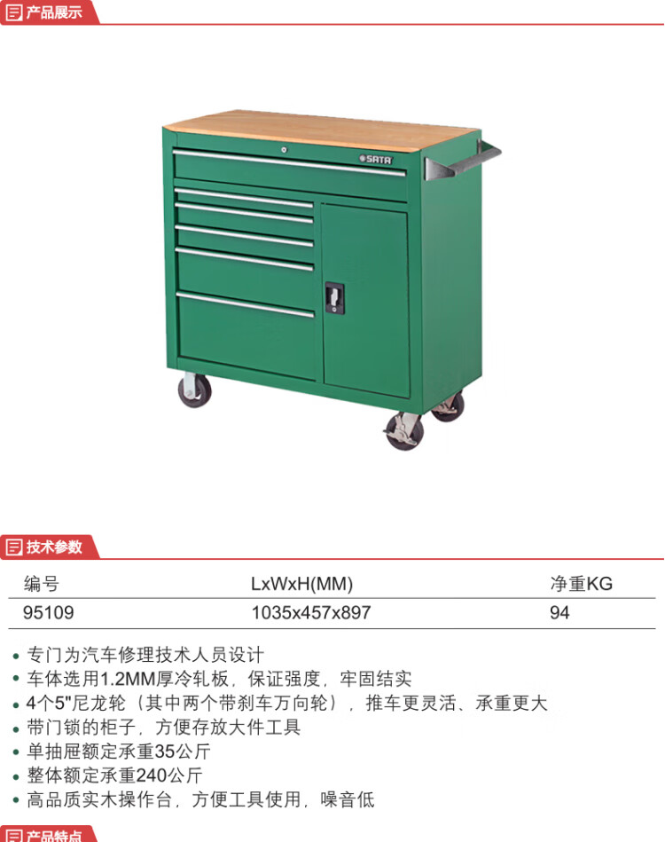 世达 八抽屉柜型工具车1035x457x897MM 95109