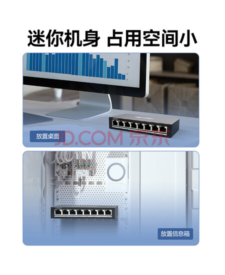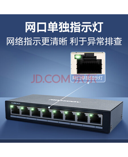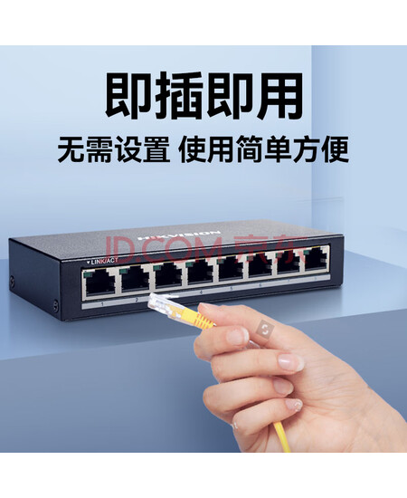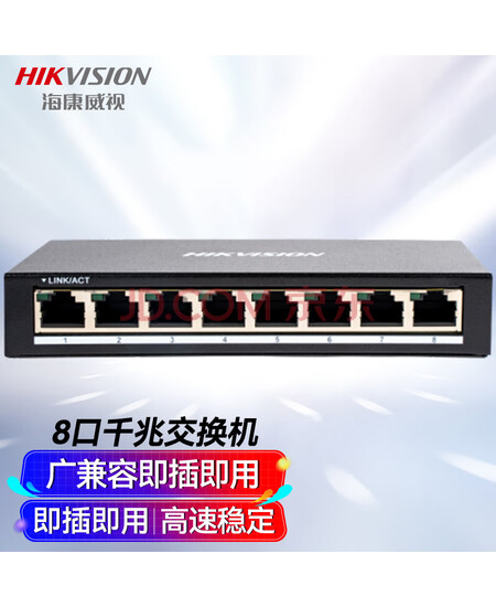HIKVISION海康威视交换机8口千兆非网管型监控网络分线器延长网线交换器传输分流器金属外壳散热DSW-08