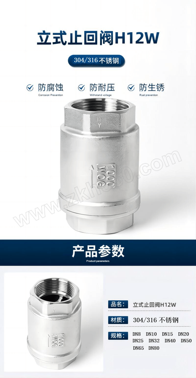 | 产品名称 | 不锈钢H12W-16P立式内丝螺纹水泵水管单向止回阀 |