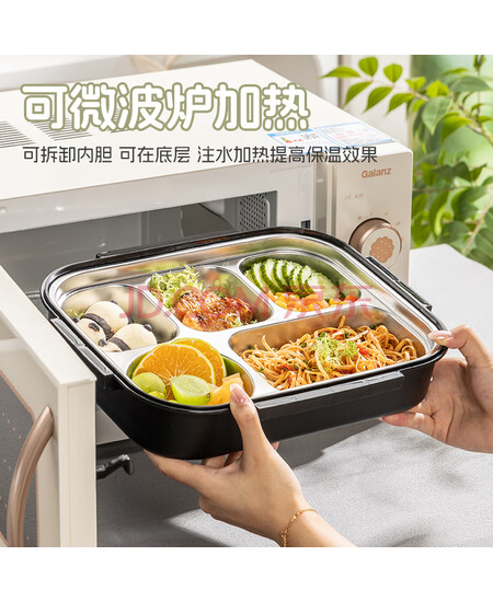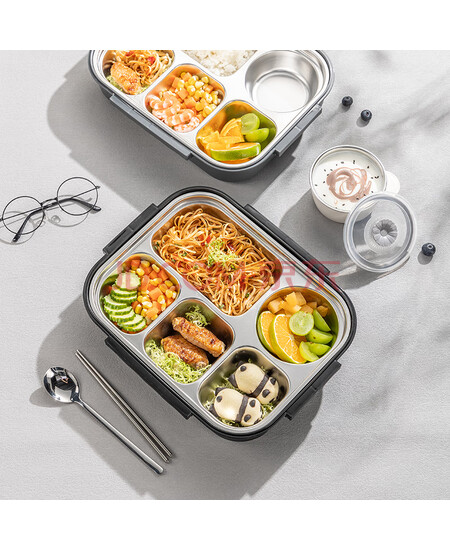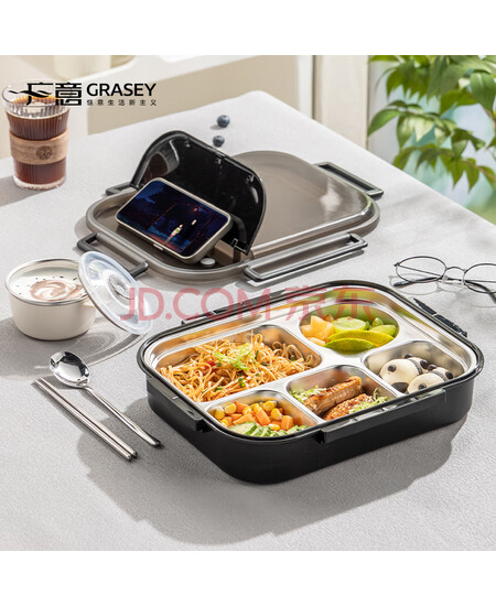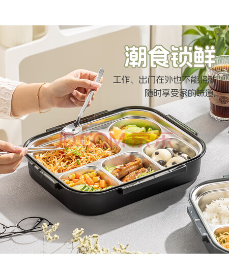 广意304不锈钢保温饭盒学生上班族微波炉大容量餐盒黑色配餐具GY7330