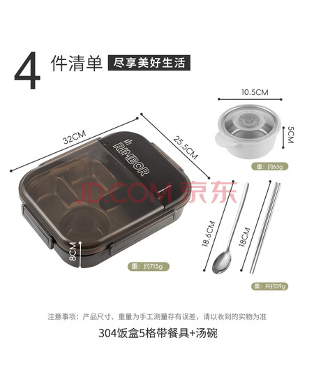 包装清单: 饭盒*1、汤碗*1、餐具*1