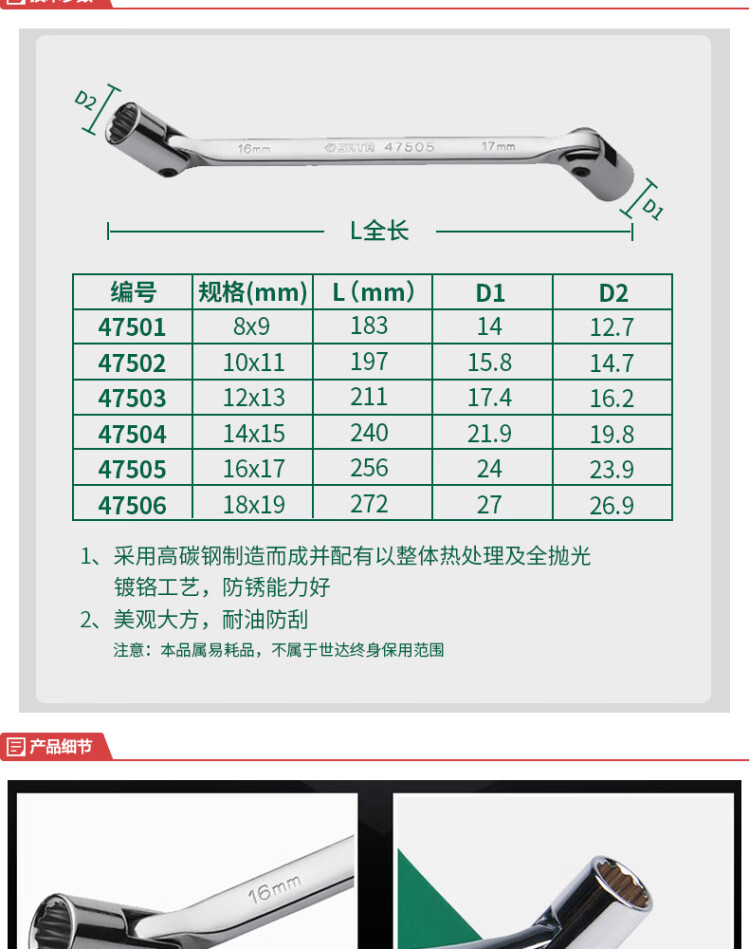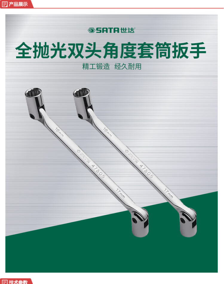 世达 全抛光双头角度套筒扳手10X11mm 47502