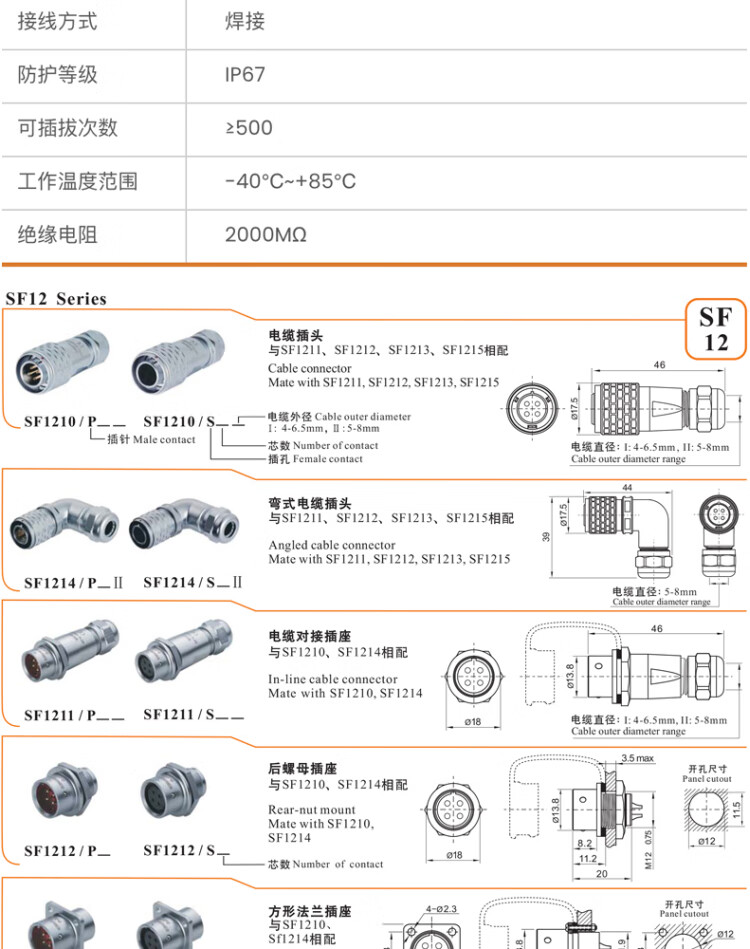威浦 SF12型2针电缆插头 SF1210/P2