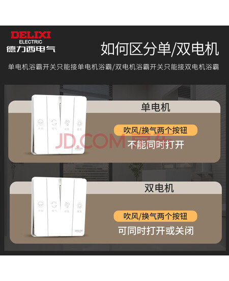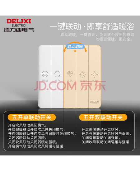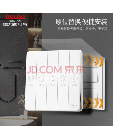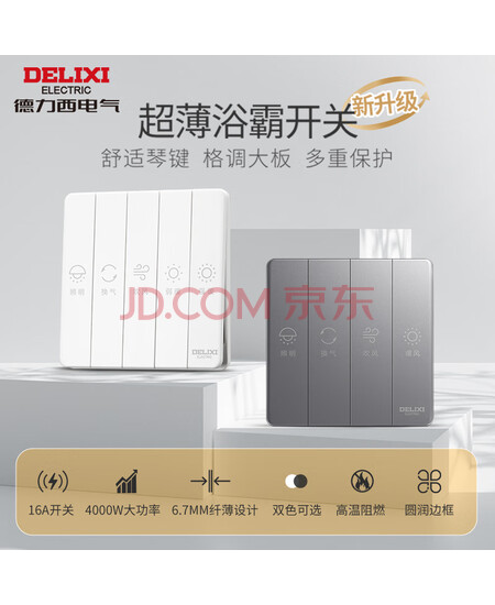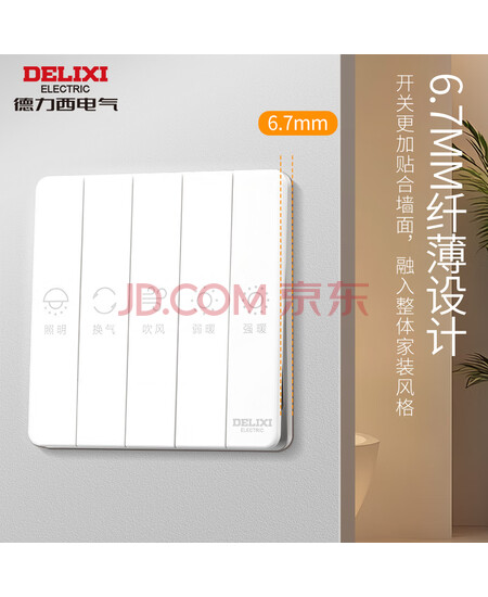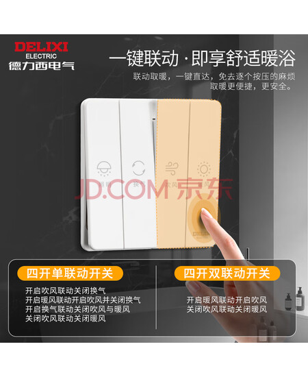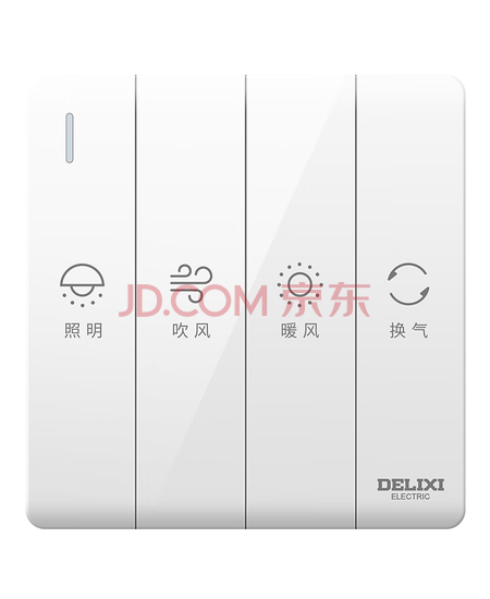德力西(DELIXI)86型浴霸开关卫生间浴室超薄琴键开关面板 四位双电机白色