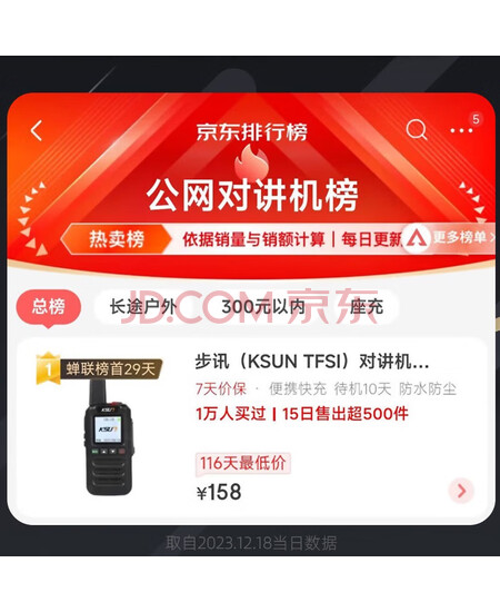 KSUN TFSI步讯对讲机公网5000公里全网通免年费不限距离全国通4G/5G插卡自驾游户外车队工地酒店民用CT1定位
