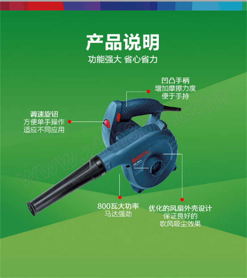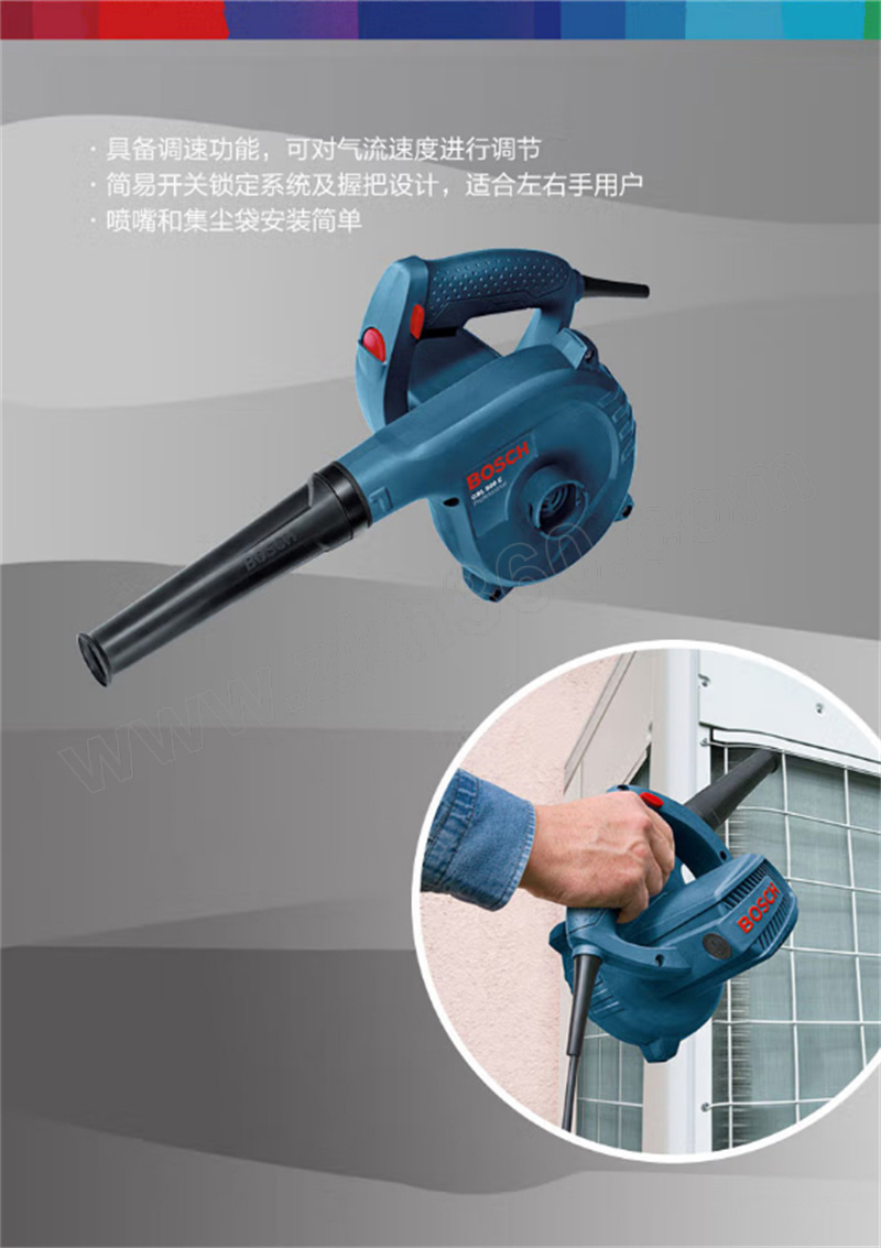 ·拥有强大的气流,工作效果更高 ·空气流量高 ·强劲的电机 ·具备调速功能,可对气流速度进行调节 ·简易开关锁定系统及握把设计,适合左右手用户 ·喷嘴和集尘袋安装简便