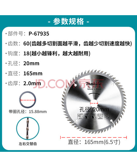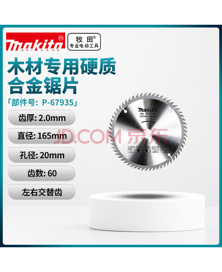牧田(MAKITA)木工锯片切割机手提锯木材硬质圆锯片6.5寸直径165mm60齿P-67935