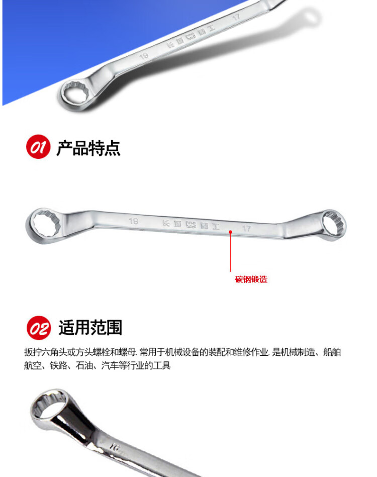 长城精工 公制镜抛平板双头梅花扳手24X27mm 311140