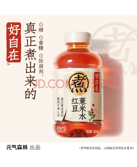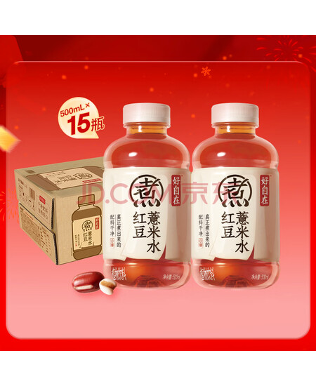 元气森林【好自在】 元气自在水 红豆薏米水 500mL*15瓶装整箱 植物饮料