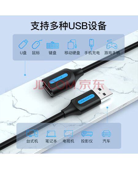 威迅 CBI系列USB 2.0 A公对A母延长线直头圆线PVC款黑色1.5米 CBIBG
