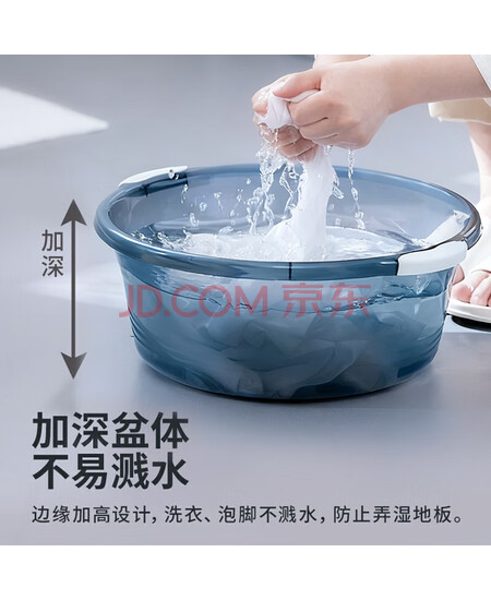 CHAHUA茶花 洗脸盆大号38cm单只洗脚盆洗衣盆塑料盆子泡脚盆洗菜盆蓝色