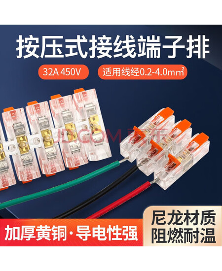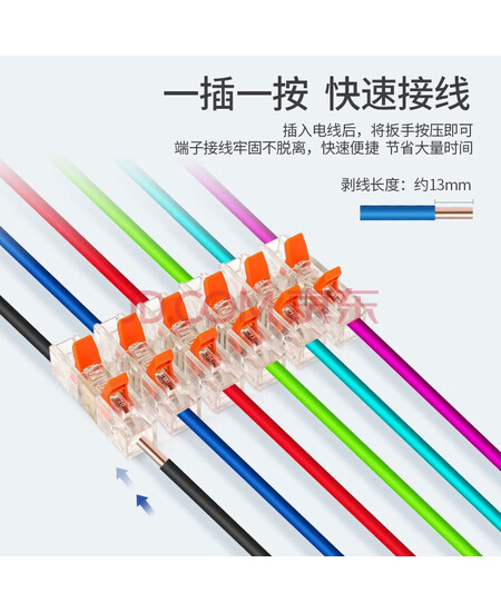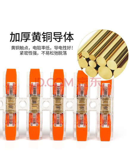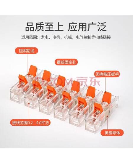 奎神电力(KUICC)加厚实铜导电按压式快速接线端子大功率接线柱不锈钢弹片接线神器 橙蓝双色2进2出(10只)