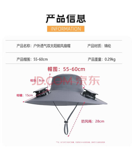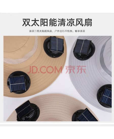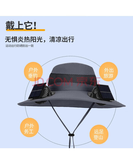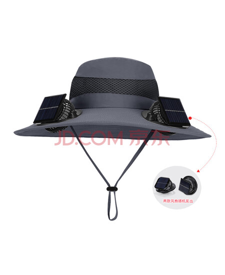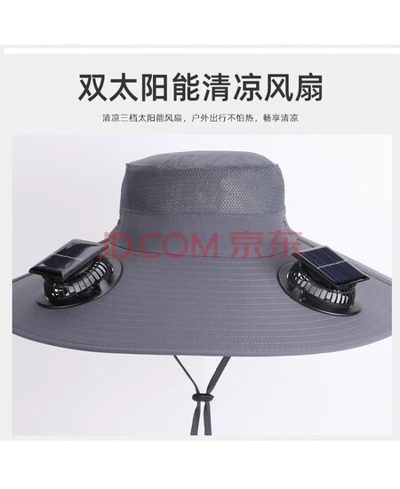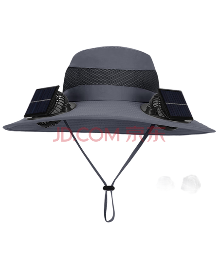 鸣固工作帽 太阳能风扇帽双风扇夏季劳保遮阳降温渔夫帽 深灰