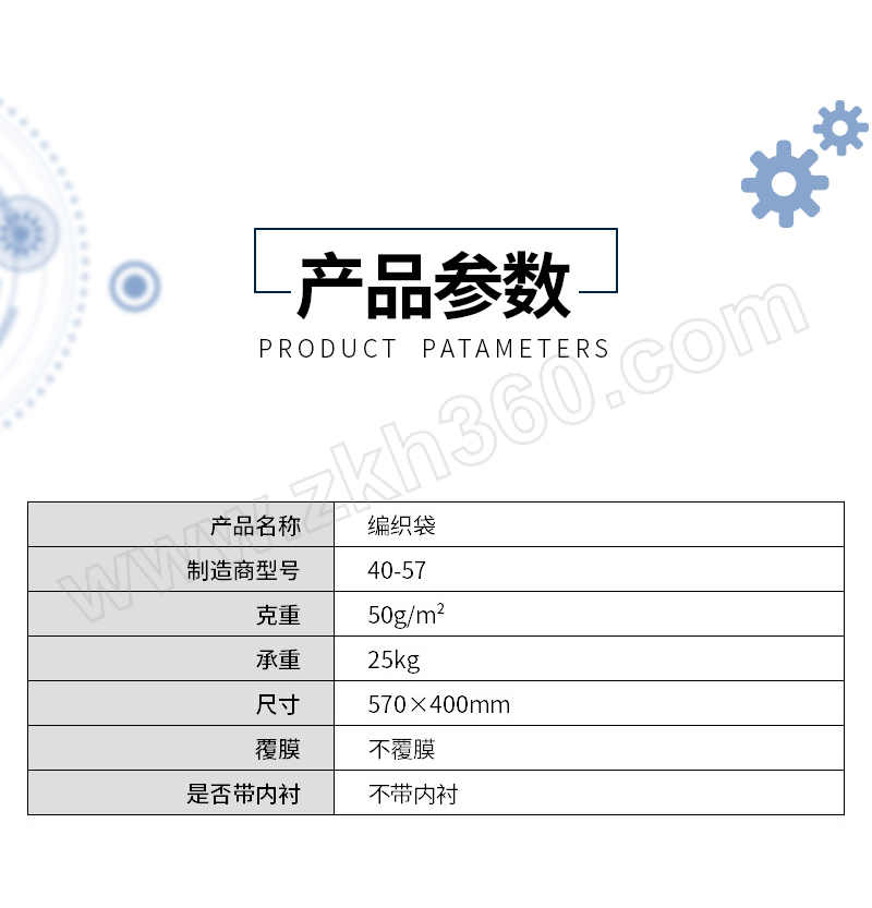 | 核心规格 | 尺寸400×570mm 长度±50mm 宽度±30mm 载荷25kg 克重50g/m² 无内衬 黄色 100条 |