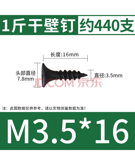 千速轮高强度干壁钉自攻螺丝石膏板十字平头自攻钉木螺丝钉 M3.5*16(1斤约440支)