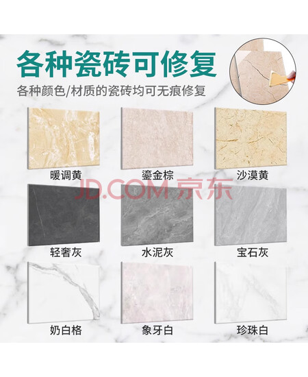 小匠材瓷砖修补剂可调色釉面修复膏洗手盆大理石补坑洞砖破损陶瓷砖马桶