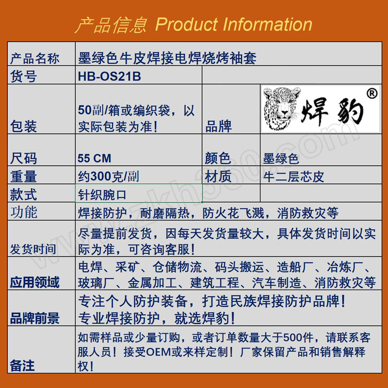 | 产品名称 | 墨绿色牛皮电焊焊接防护袖套 |