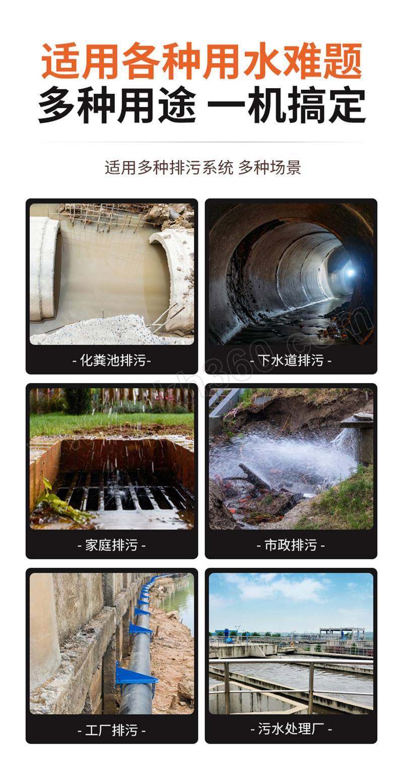 ·适用于勘探矿山及水处理设备配套,市政工程,建筑工地中稀泥浆的排放,企业单位废水排放,医院,宾馆,高层建筑污水排放