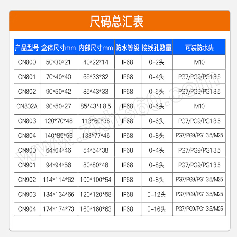| 核心规格 | CN803-4接线盒PG9×4 |