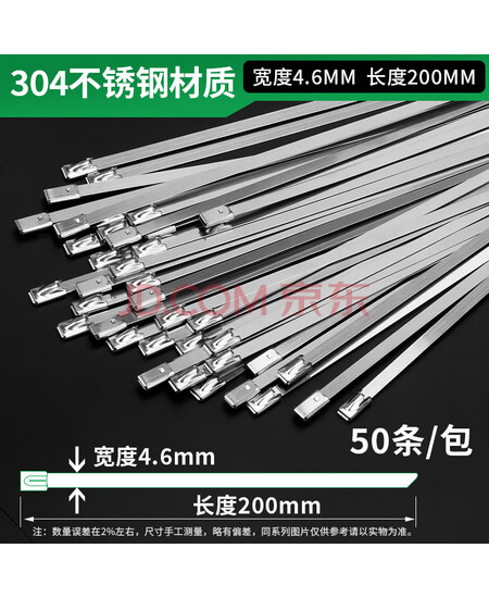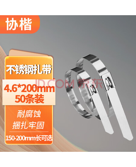 协楷不锈钢扎带捆绑自锁金属白钢卡扣绑带扎丝防水防锈 【京闪送】4.6x200mm【50条装】