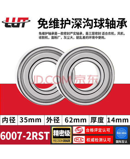 鲁泰免维护6007-2RST农机专用进口级轴承大全尺寸35*62*14mm