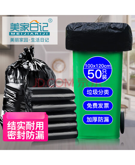 美家日记 垃圾袋 家用连卷平口垃圾袋 600只/30卷 加厚断点式垃圾袋 黑色收纳袋 45*50CM家用装垃圾袋