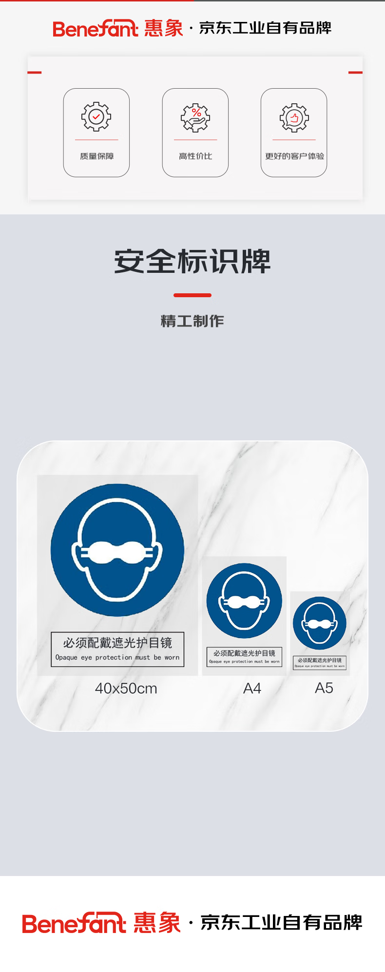 惠象 安全标识牌(必须配戴遮光护目镜)3M不干胶 国标 A4尺寸 5张/件