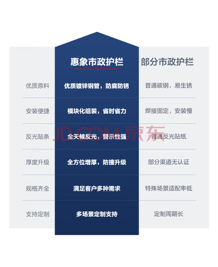 惠象 京东工业品自有品牌 市政护栏中厚款0.6m高*3.08m长*立柱1.0mm厚*横梁0.7mm厚 两套价