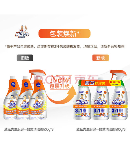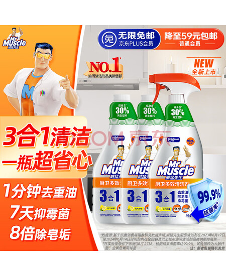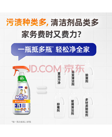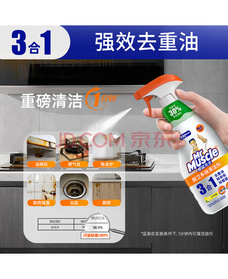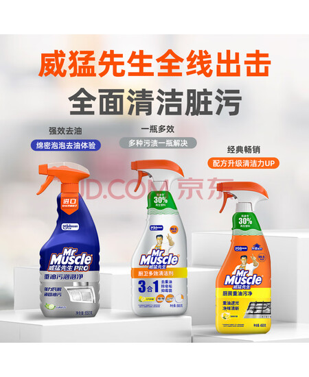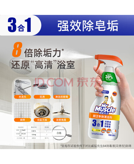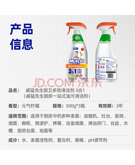 威猛先生(Mr Muscle)厨卫三合一去油污抑霉菌除皂垢多功能清洁剂 500g*3瓶 元气柠檬