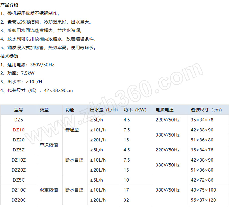 | 产品名称 | 不锈钢电热蒸馏水器(普通) |