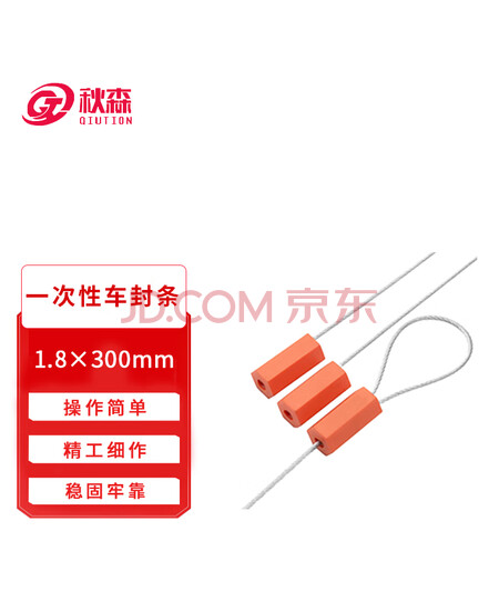 秋森 QIUTION 一次性车封条 施封锁扣 钢丝铅封 橙色 1.8×300mm 100条/包QS7630B