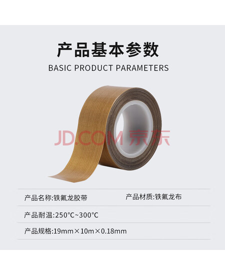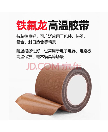 科密 铁氟龙胶带 隔热绝缘耐高温胶布 耐高温300度 棕色 19mm×10m×0.18mm 5卷 KG7136B