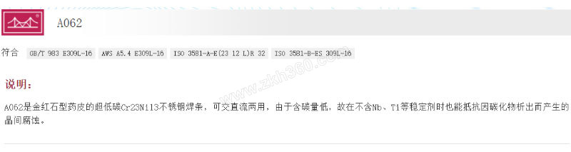 | 制造商型号 | A062(E309L-16)-3.2mm 定制 |