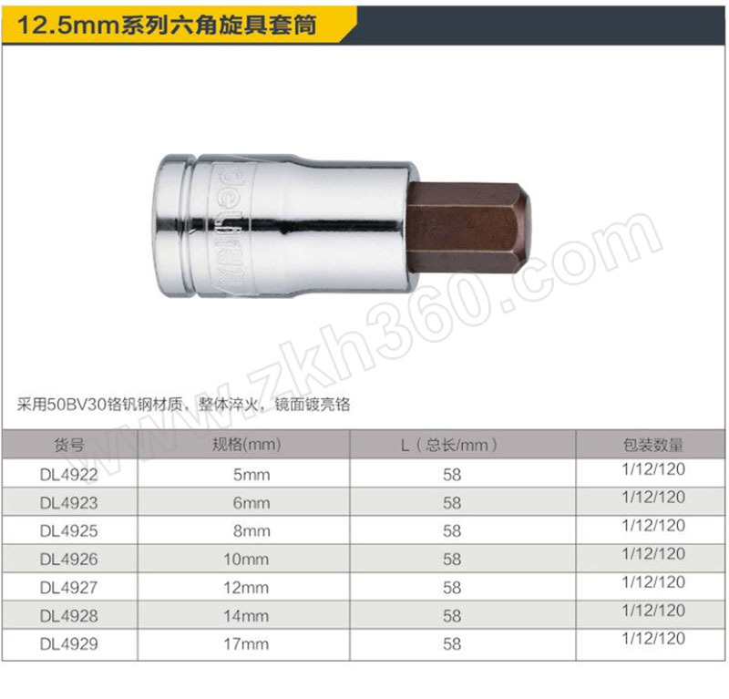 | 产品名称 | 12.5MM系列六角旋具套筒 |