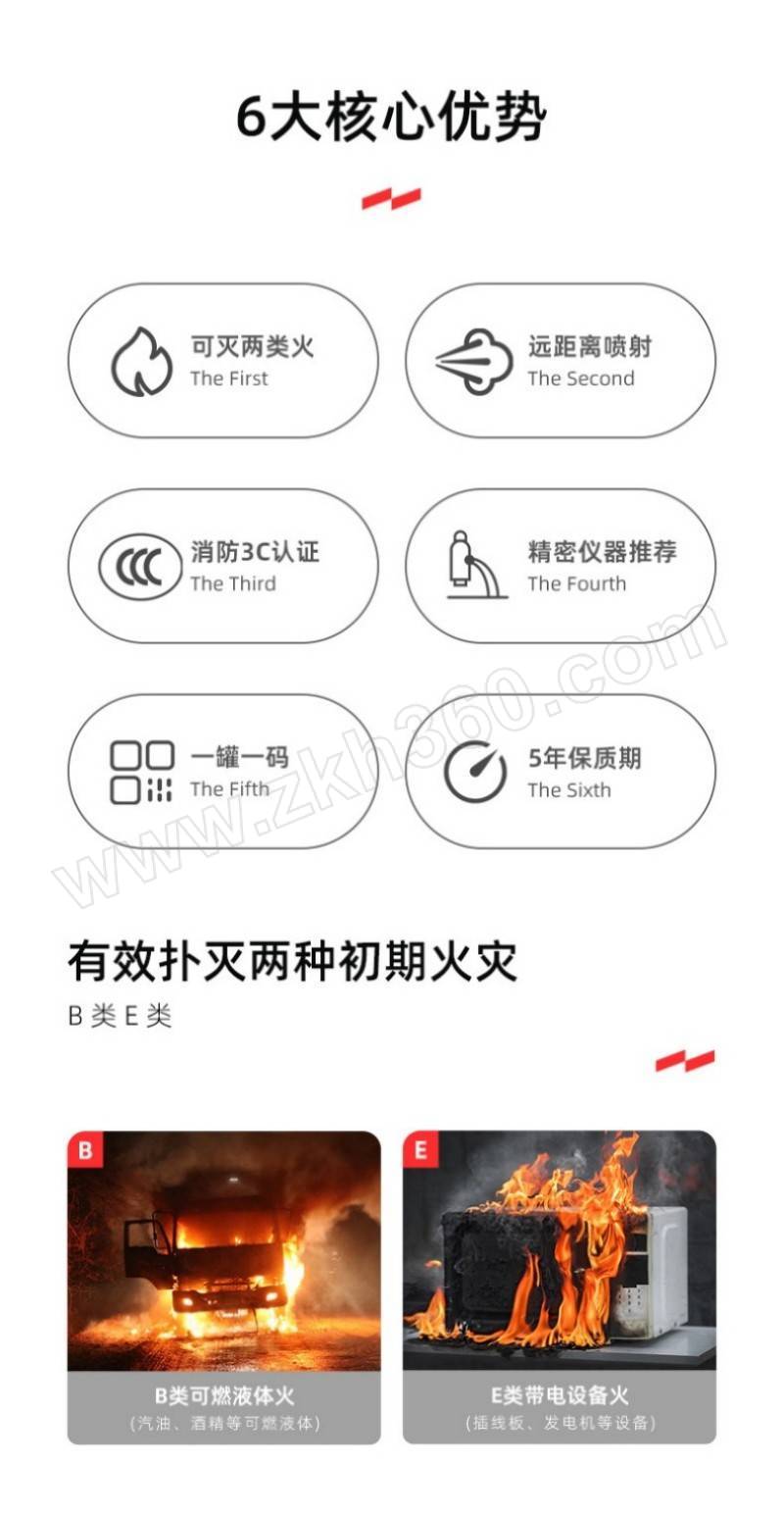·经按GB4351-2023《手提式灭火器》,CNCA-C18-02:2024《强制性产品认证实施规则灭火器》,CCCF-CCC-I(C/0)《强制性产品认证实施细则火器产品》检验,合格,灭火迅速,不易污染,不易复燃,喷射强劲