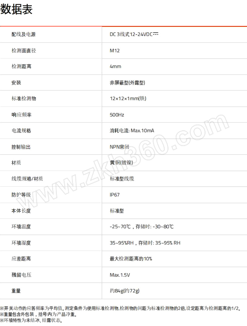 | 核心规格 | φ12mm 检测距离4mm 三线NPN |