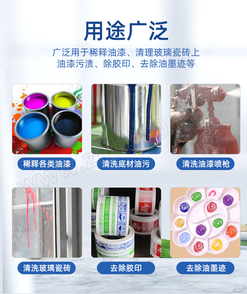 ·稀释各类油漆/清洗底材油污/清洗油漆喷枪/清洗玻璃瓷砖/去除胶印/去除油墨迹等