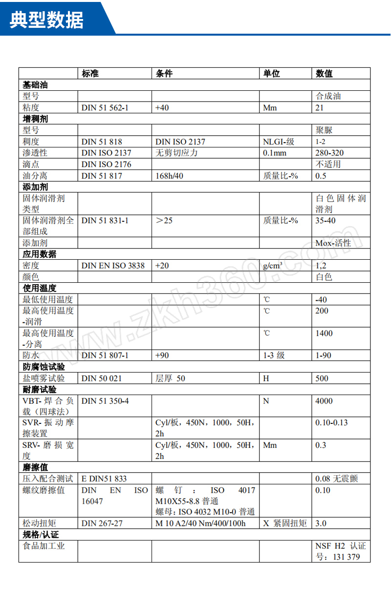 ·白色膏,不含金属; ·用于承受高压和高温的螺杆、螺栓和滑动面, 拧紧力矩与可达预应力达到良好的比例,不含金属,具有出色的防腐能力。 ·通用型高温润滑膏。 ·可用于不锈钢连接件。