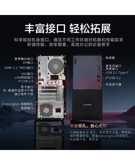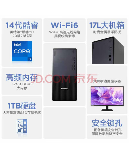 联想 ThinkCentre P900c 商用办公台式机I7-14700/32G/1T/集成显卡+27吋2K显示器+有线键鼠 +大鼠标垫