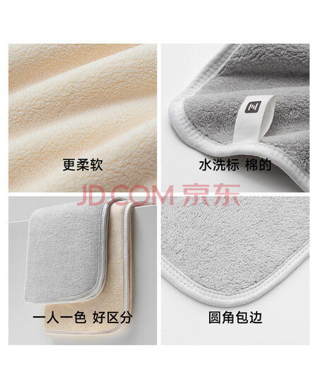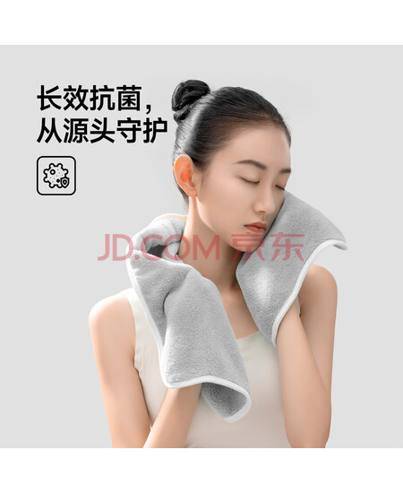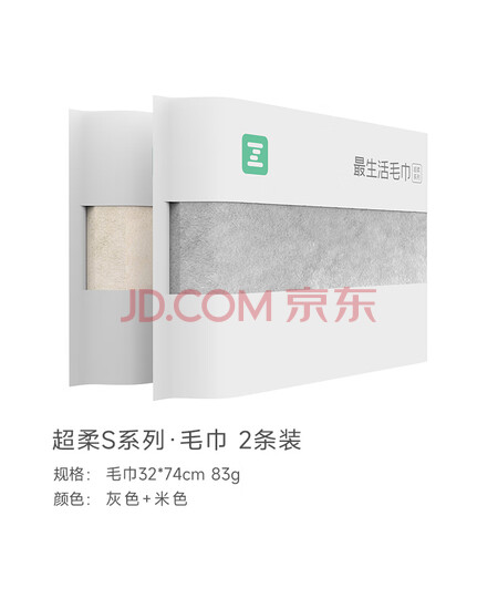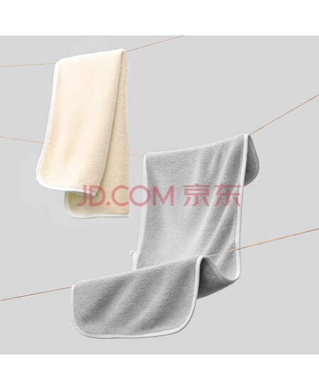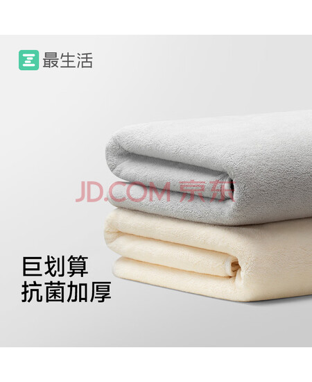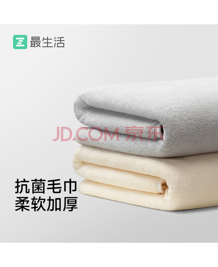 最生活抗菌毛巾加厚2条装 柔软吸水家用洗脸毛巾男士洗澡大面巾 灰米