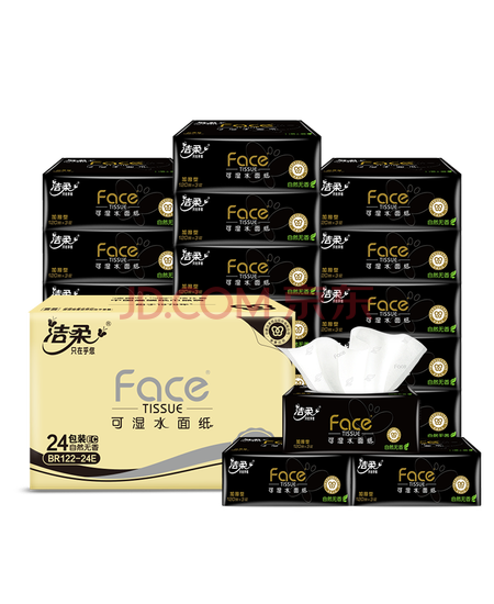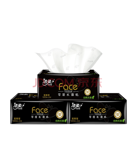 包装清单: 洁柔抽纸 黑Face可湿水3层120抽*24包 干湿两用面巾纸 替代毛巾 整箱(新老品交替发货)