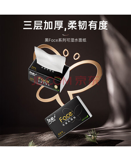 洁柔抽纸 黑Face可湿水3层120抽*24包 干湿两用面巾纸 纸巾卫生纸整箱