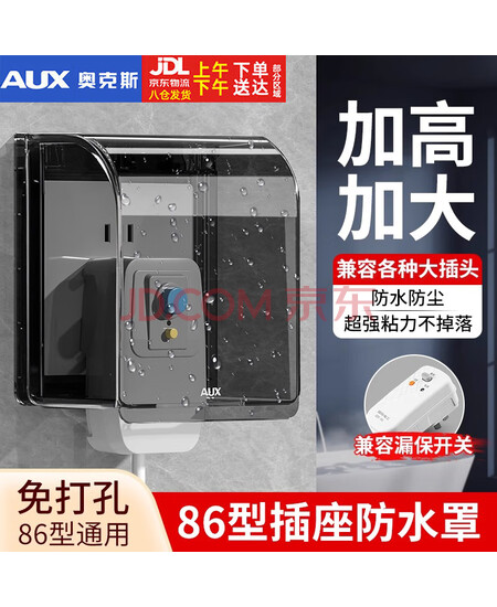 奥克斯加高防水盒86型开关防水盖浴室热水器漏电插座防水罩粘贴 透明