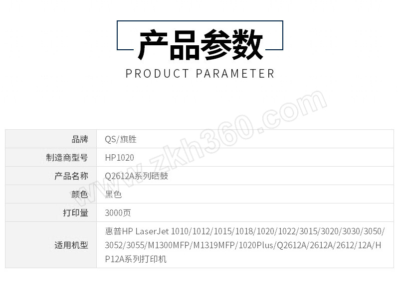 | 适用机型 | 惠普HP LaserJet 1010/1012/1015/1018/1020/1022/3015/3020/3030/3050/3052/3055/M1300MFP/M1319MFP/1020Plus/Q2612A/2612A/2612/12A/HP12A系列打印机 |