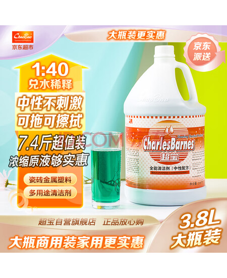 超宝全能清洁剂中性3.8升大瓶装 地板地面瓷砖多用途清洗液全能水